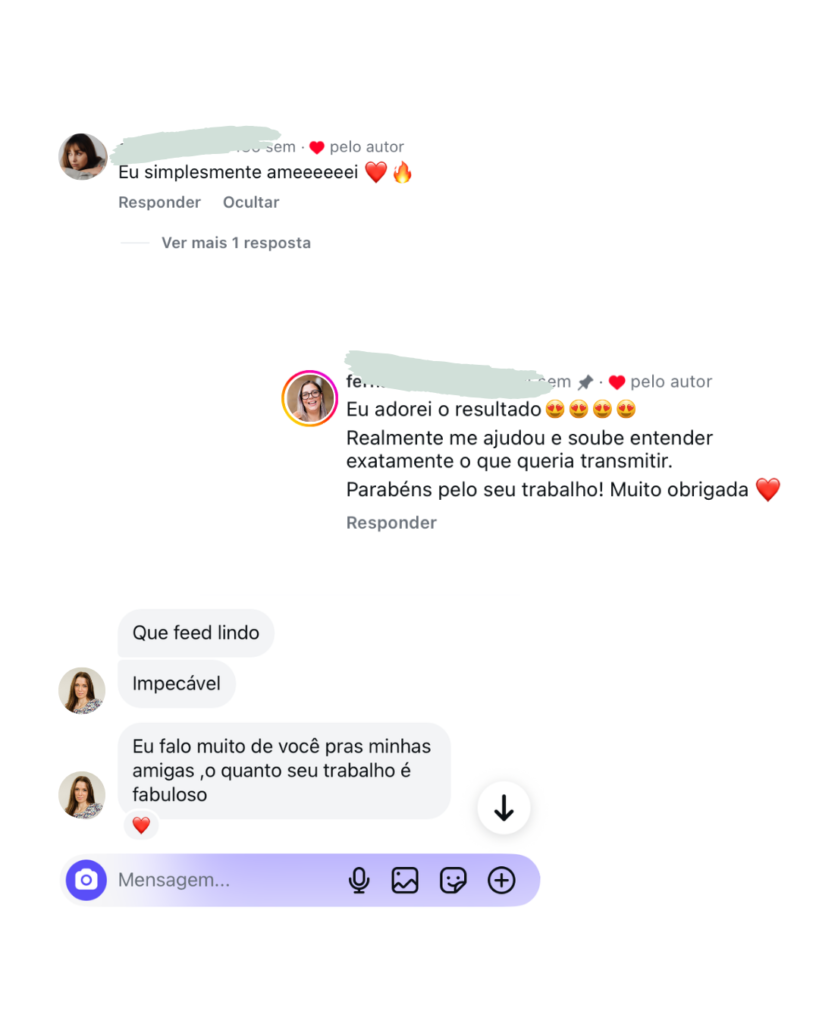 Poder ver pessoas reais apaixonadas pelo Pack essencial e com o feed trasnformado.